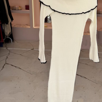 Φόρεμα ελαστικό λευκό με μαύρες λεπτομέρειες