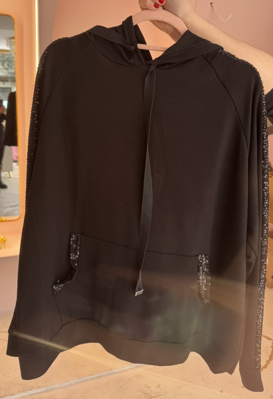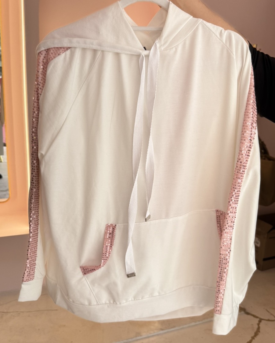 Φόρμα με κουκούλα και παντελόνι παγιέτες στα πλαϊνά του παντελονιού και τον μανικιών