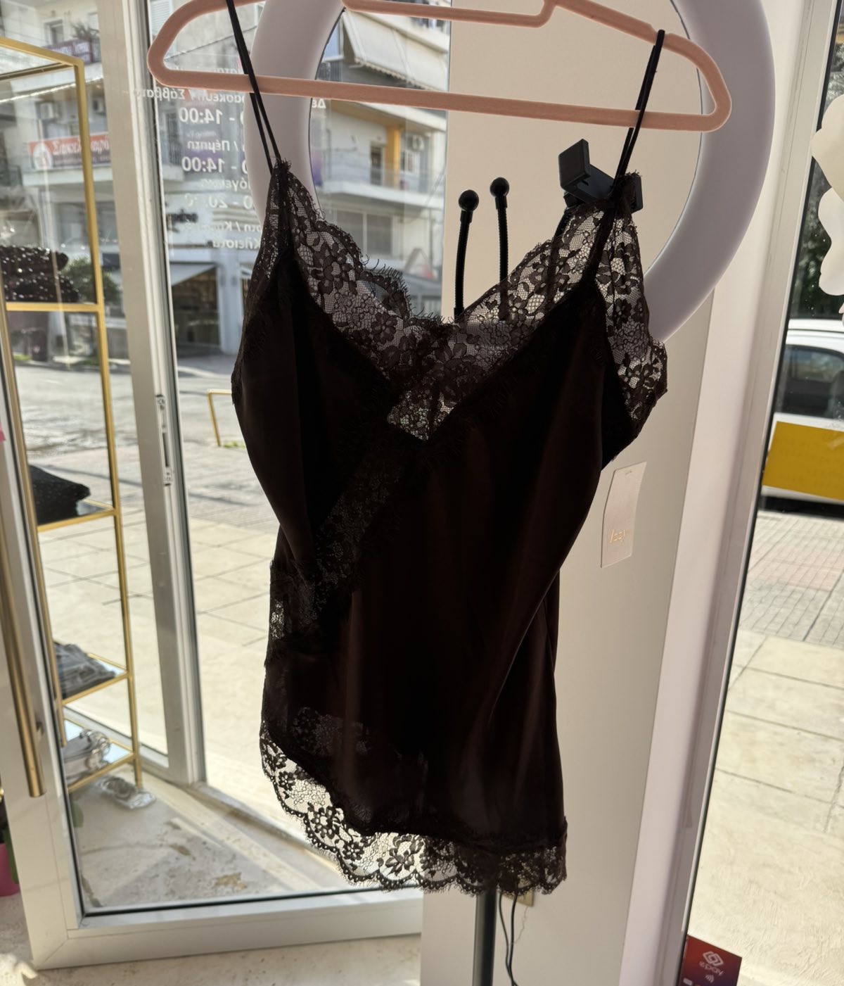 Λινζερι σοκολα Ασύμμετρο κοντό με δαντέλα καλύπτει από small έως medium one size