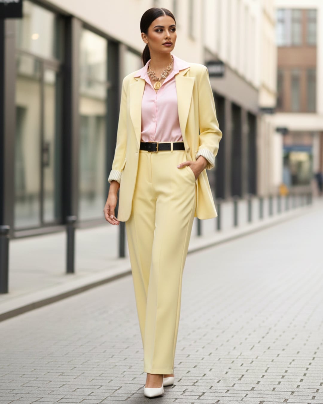 Σικάτο Κοστούμι φοδραρισμένο σε σιέλ Κίτρινο και μαύρο καλύπτει από small έως large με ζώνη και λάστιχο στη μέση